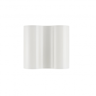Vägglampa med indirekt och diffust ljus. Munblåst glaskupa vit blank yta. Fäste och väggmonteringsplatta i epoxipulverlackerad metall.