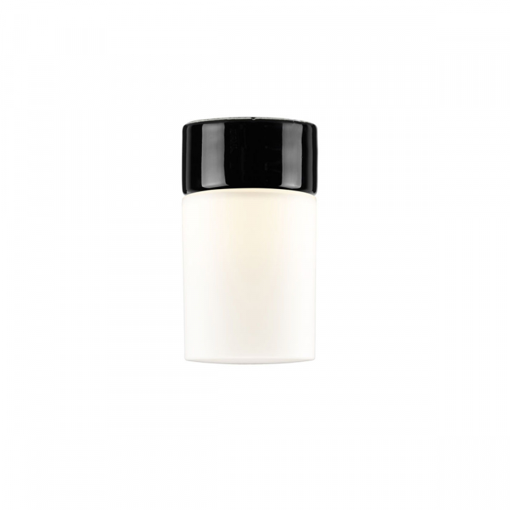 Denna enkla och vackra armatur är anpassad och godkänd för att sitta i utrymmen med hög fuktighet och värme. Därför passar den bra i såväl badrumsmiljö som utomhus. Ljuset är avbländat genom ett opaliserat glas och ger rummet en jämn belysning.