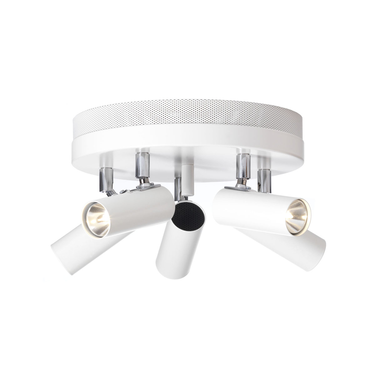 Puck är en stilren serie. En lampa som lätt kan bli en favorit genom sin flexibilitet och form. En serie som trots sin strama stil känns mjuk. En sann klassiker som aldrig går ur tiden.Puck formgavs av belysningsdesignern Åke Hultgren 1987. Taklampan är nätt till sin form, dimbar och finns med tre eller fem spotlights som alla är riktbara. Knoppen i plattans underdel kan bytas till en krok och därmed kompletteras med ytterligare en armatur, exempelvis en kristallkrona. Puck har uppdaterats genom att modernisera ljuskällan från halogen till LED och färgen är RAL 9016 med strukturerad yta. Puck tak levereras md 50cm anslutningsledning med öppen ände, ska kompletteras med lamppropp.
